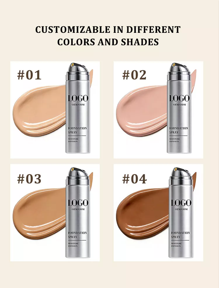 Vår Wilson hydrating, lugnande, ljusande foundationspray erbjuder anpassning över flera aspekter, inklusive formuleringsdesign, nyansmatchning, förpackningsformat och varumärkesmärkning. Kunder kan skräddarsy funktionella egenskaper som täckningsnivå, oljekontrolleffektivitet, fuktgivande ingredienser och solskyddsfaktor enligt målmarknader och konsumentkrav. Samtidigt kan en rad nyanser anpassade till varumärkets estetik väljas för att passa olika hudtoner. När det gäller förpackning är sprayflaskans kapacitet, material, munstyckstyp och estetiska design alla anpassningsbara, vilket säkerställer både praktiska och visuella tilltalande. Dessutom stöder vår fabrik skräddarsydd varumärkesbyggande med anpassade logotyper, förpackningstryck och instruktionsbroschyrer, vilket möjliggör personlig varumärkesreklam och differentierad marknadspositionering.