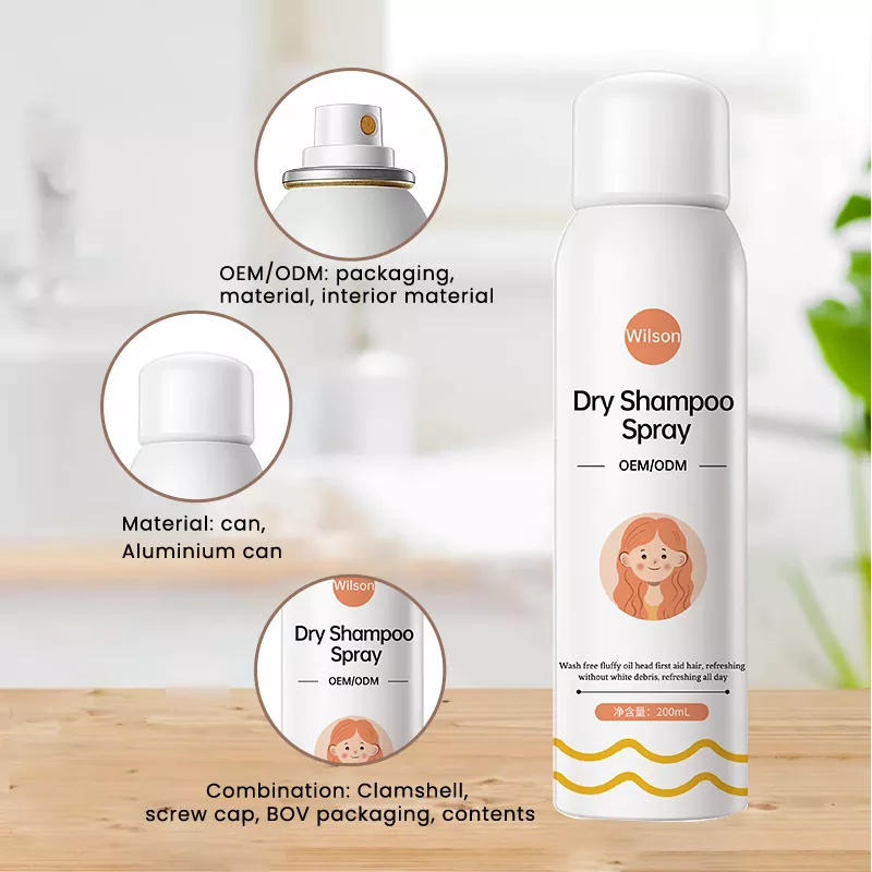 Wilson Instant no-wash cool torrschampospray genom att tillsätta glycerin, triglycerid, vitamin E, vitamin B5 och andra hårvårdsingredienser, så att hårets näring och fukt, för att fylla mjäll och håret självt, saknar ingredienser, samtidigt som det kompletterar håroljelagret, reparerar hårskador, skyddar huvudet från den yttre miljön och slutligen uppnår den friska hårets syfte att vila.