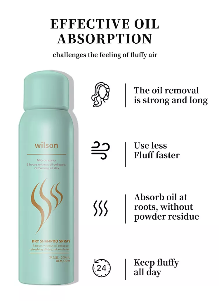 Wilson Instant no-wash cool torrschampo spray unik formula är rik på naturliga ingredienser, fri från skadliga kemikalier, skonsam och icke-irriterande hårbotten, effektivt absorberar överflödig olja, så att håret att återställa rent och lätt. Oavsett om du är på resa, i en nödsituation eller efter en hektisk dag, är Wilson Instant Leave-In Cool Dry Shampoo ett bekvämt och praktiskt hårvårdsverktyg för att hålla ditt hår fräscht och rent, och att ditt hår ser bra ut och känns bra när som helst, var som helst.