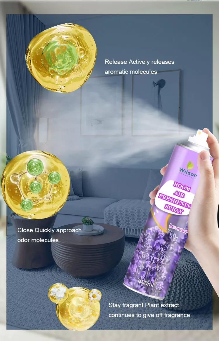 Vår Room Air Freshener Spray-produkthölje har en raffinerad aluminium/plåtburkdesign, kompakt volym, lätt att bära hela tiden, 360-graders tryckmunstycke, så att sprayen kan sprayas jämnt och flöda. Den kan inte bara ta bort skadliga ämnen som lukt, formaldehyd, PM2.5, utan också effektivt filtrera fina partiklar som damm och virus i luften, vilket skapar en ren och fräsch hemmiljö för dig