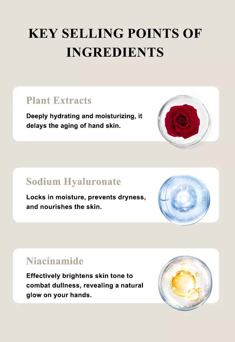 Efter att ha använt Quick Absorption Immediate Relief Hand Cream blir huden ömtåligare, fina linjer minskar och hudens vattenhalt ökas.Handkräm är lämplig för olika tillfällen i vardagen, speciellt för dig som ofta tvättar händerna, kommer i kontakt med rengöringsmedel eller utsätts för torra, kalla miljöer. Oavsett om det gäller hemvård, kontorsmiljöer eller utomhusaktiviteter, skyddar handkrämen i rätt tid dina händer effektivt och upprätthåller en frisk, ungdomlig hud.